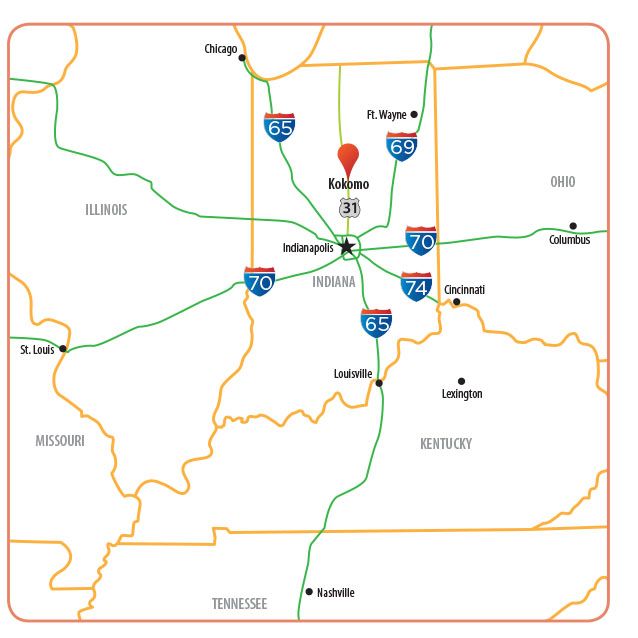 No matter how you travel, Kokomo is conveniently located in north central Indiana, 50 miles north of Indianapolis off U.S. 31.